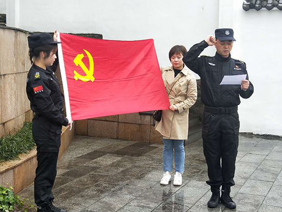 上午十时祭扫活动开始,首先全体党员、入党积极分子、团员干部环绕烈士墓一周,一一向烈士墓敬献了花束,并集体默哀三分钟。随后由党支部书记陈峰同志讲述了蒋忠烈士的生平事迹和革命斗争史。最后进行重温入党宣誓活动,全体党员举起右手,在烈士墓前庄严起誓。参加祭扫活动的人员表示,以重温入党誓词的形式在烈士墓前开展宣誓,进一步深化了祭扫活动的纪念意义。在今后的工作中,更要以先辈为榜样,恪守入党誓言,履行职责使命,以自己的实际行动为党徽、团徽增光添彩。
