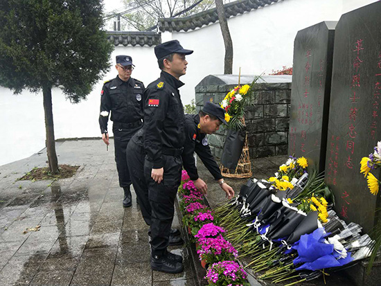 青山眠忠骨,清明祭忠魂。为缅怀革命先烈,弘扬民族主义精神,加强爱国主义教育,4月4日上午,富阳保安公司组织全体党员、入党积极分子、团员干部开展了祭扫蒋忠烈士墓活动。