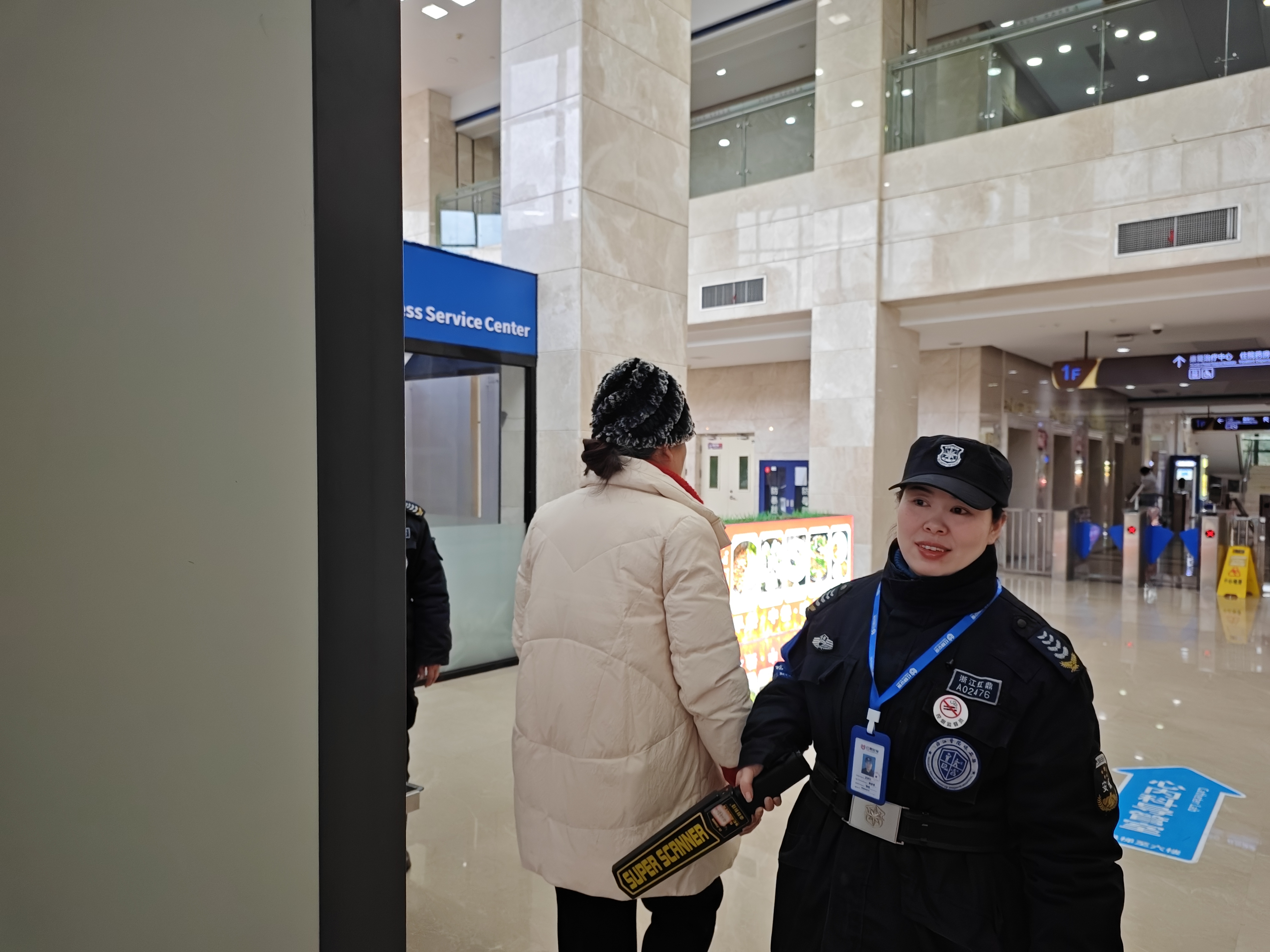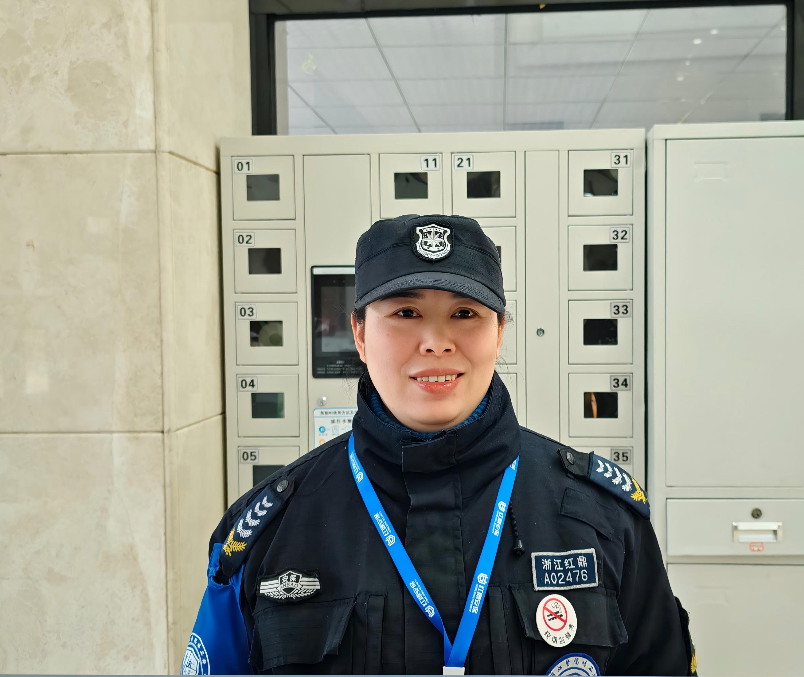 在浙江医院三墩院区住院部北二门的安检岗位上,有一位女性安检员,她不仅是守护平安的“安检卫士”,更是患者与家属心中的“暖心大姐”。她叫王京力,是浙江红鼎保安服务有限公司派驻浙江医院的一名普通却不平凡的安保队员。