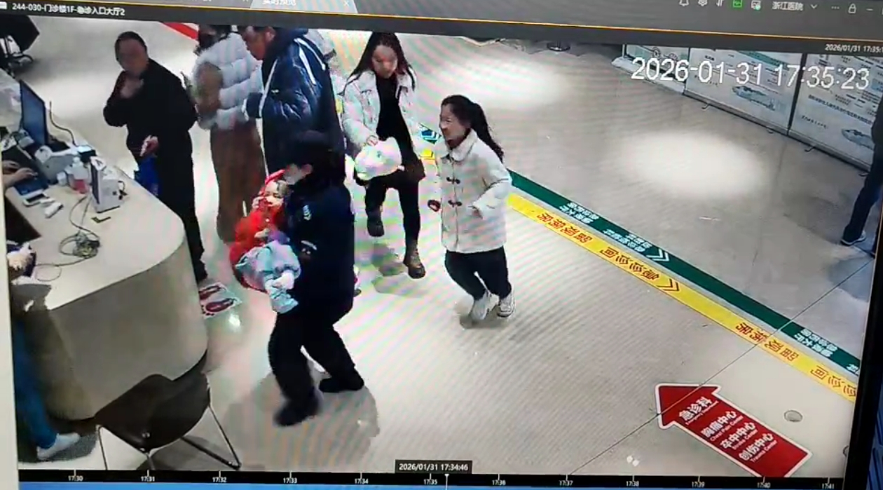 2026年1月31日傍晚,寒风刺骨。一位母亲抱着头部受伤、血流不止的女儿,踉跄着走向浙江医院三墩院区住院部。正当她体力不支、焦急无助时,她遇到了正在执勤的王京力,王京力二话不说,立刻伸手接过孩子,坚定地说:“孩子给我!”