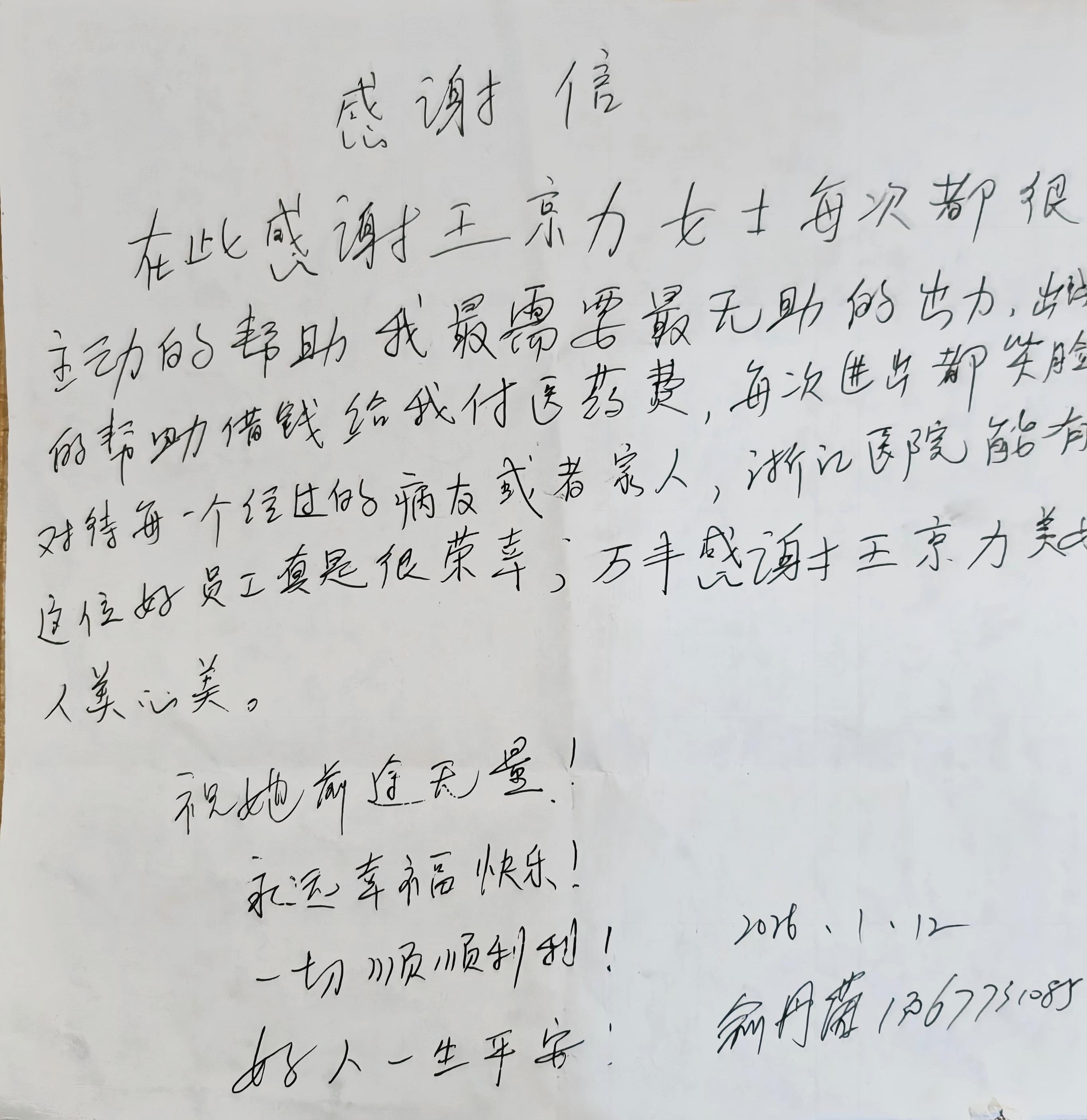 王京力的暖心善举,从不是偶然的一时之举。在日常值守中,她多次收获患者与家属的真挚谢意,用一次次行动守护着身边的人。